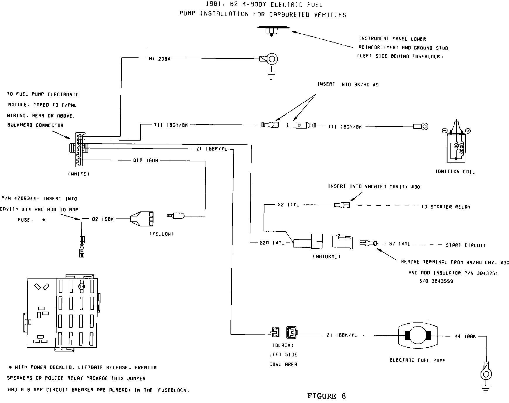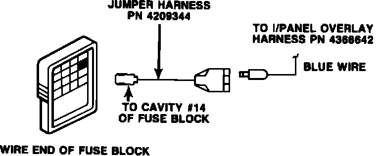 NOTE: SOME 1981-1982 VEHICLES MAY ALREADY BE EQUIPPED WITH JUMPER HARNESS, PN 4209344, IN CAVITY #14 OF FUSE BLOCK. IF SO, DISCARD JUMPER HARNESS, PN 4209344, SUPPLIED IN KIT.