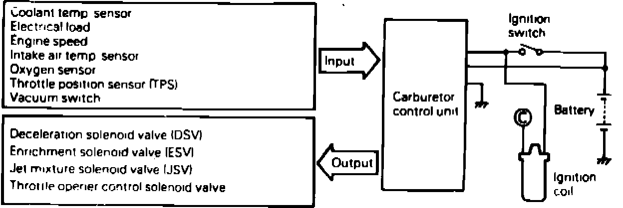 Electronic feedback carburetor system (typical). 1984-86 models: