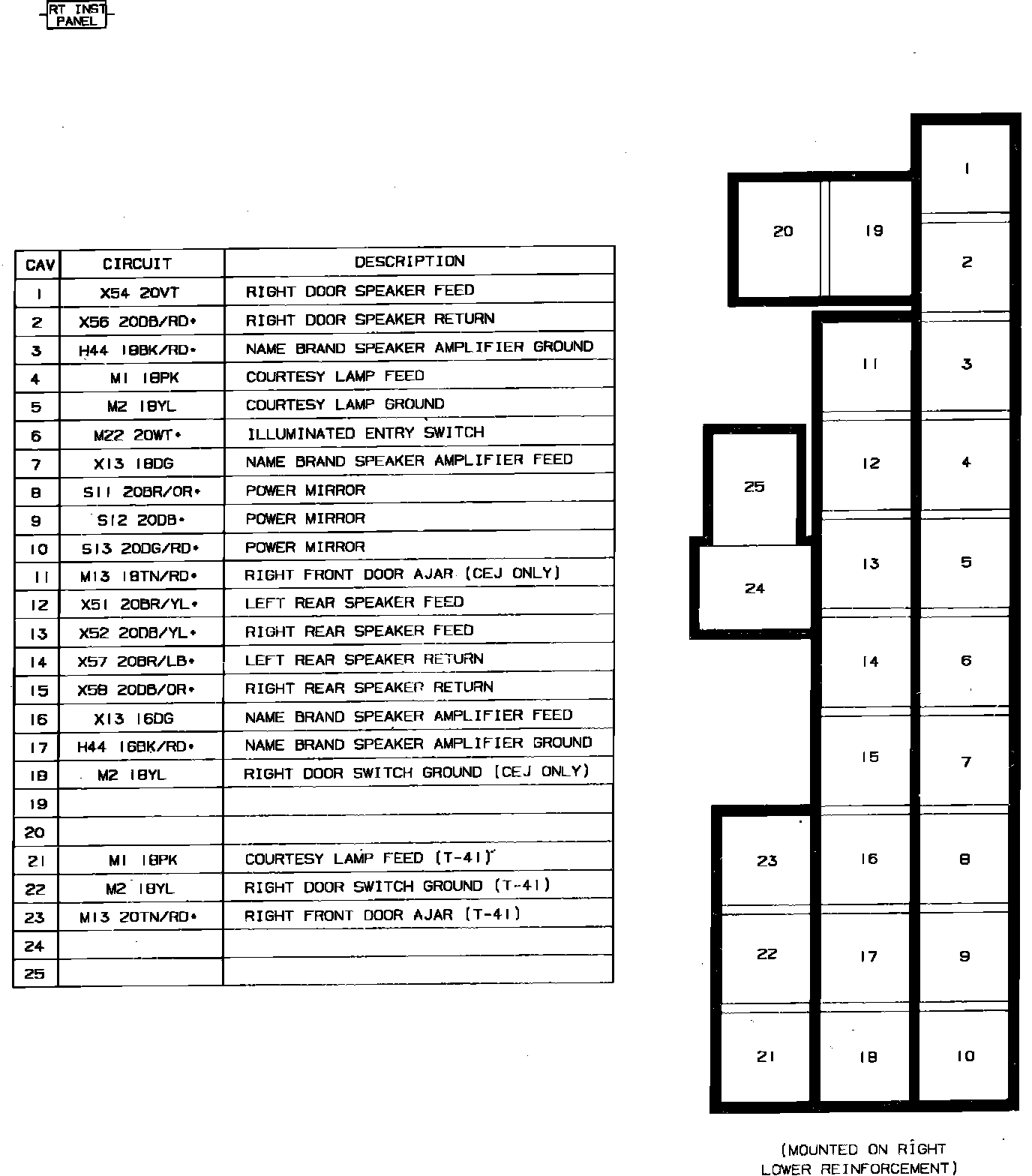 Fig. 5 Body To Instrument Panel Connectors. Right Side: