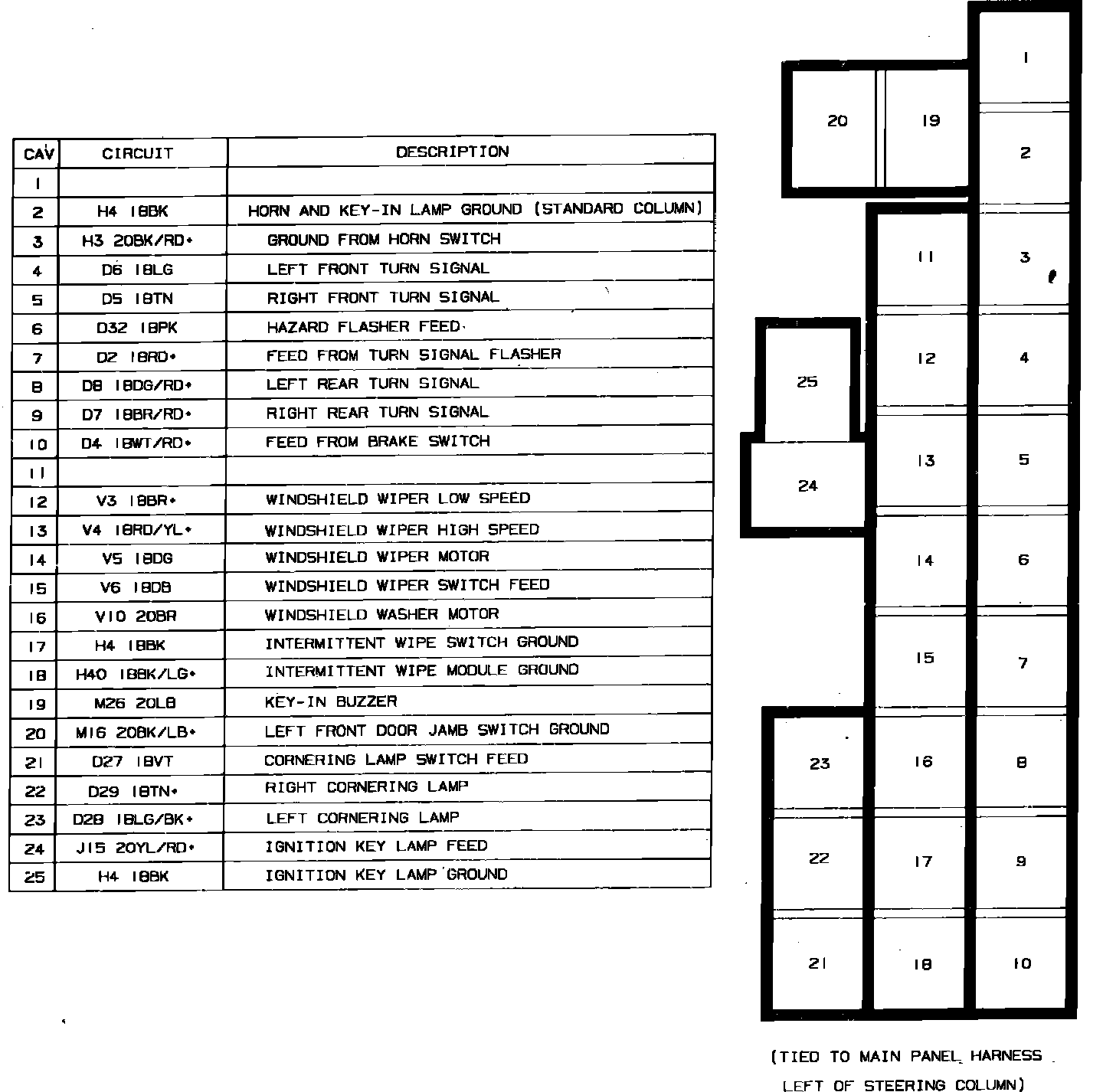 Fig. 10 Instrument Panel To Steering Column Connectors (Part 1 Of 2):