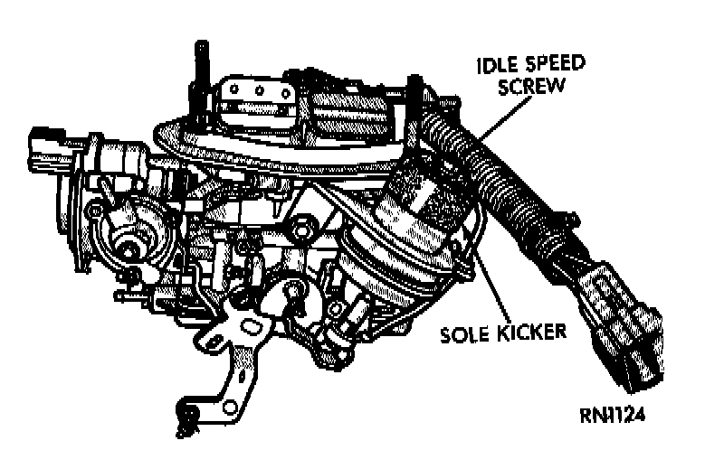 6. If engine rpm is not to specifications, turn the idle speed screw on top of the solenoid kicker until the correct idle speed is obtained.