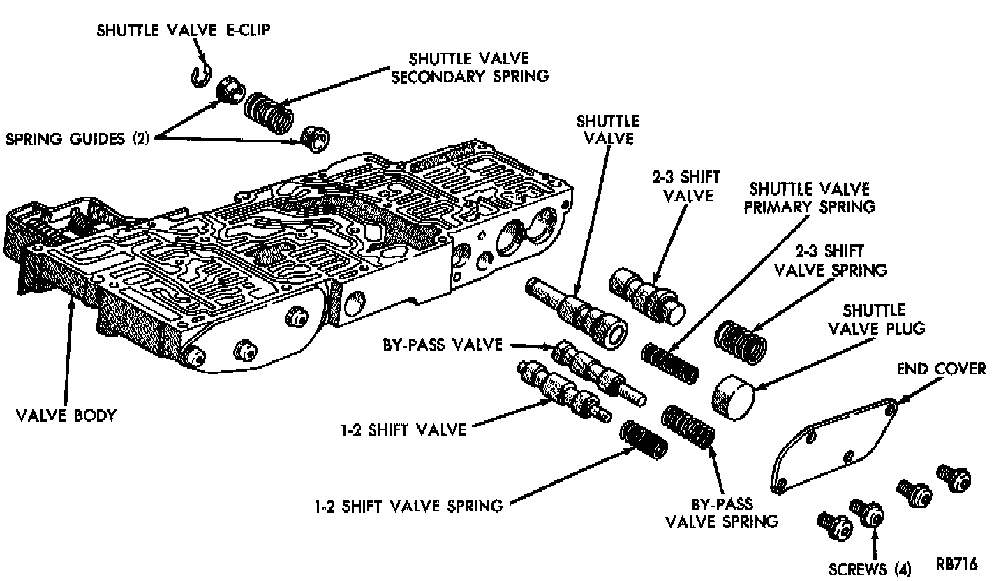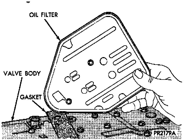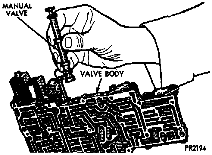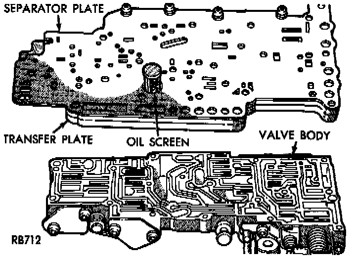 VALVE BODY RECONDITIONNOTE: Prior to removing any transaxle subassemblies, plug all openings and thoroughly clean exterior of the unit, preferably by steam. Cleanliness through entire disassembly and assembly cannot be overemphasized. When disassembling, each part should be washed in a suitable solvent, then dried by compressed air. Do not wipe parts with shop towels. All mating surfaces in the transaxles are accurately machined; therefore, careful handling of all parts must be exercised to avoid nicks or burrs. Remove all old R.T.V. sealant before applying new R.T.V. sealant. Use only R.T.V. sealant when installing oil pan.