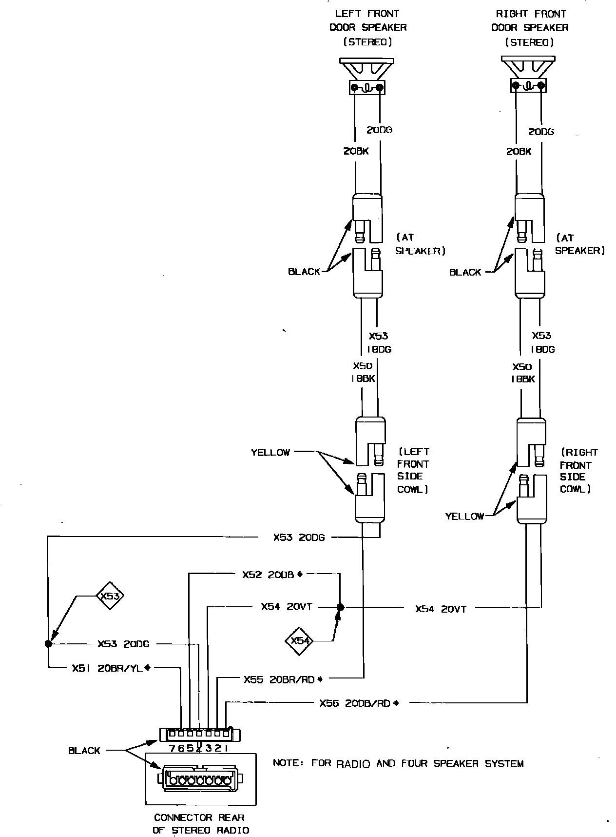 Fig. 36 Radio Speaker Wiring Circuit. Two Speaker System: