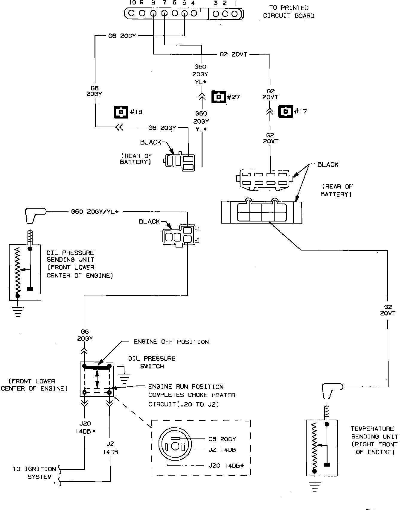 Fig. 35 Oil Pressure & Temperature Warning System Wiring Circuit: