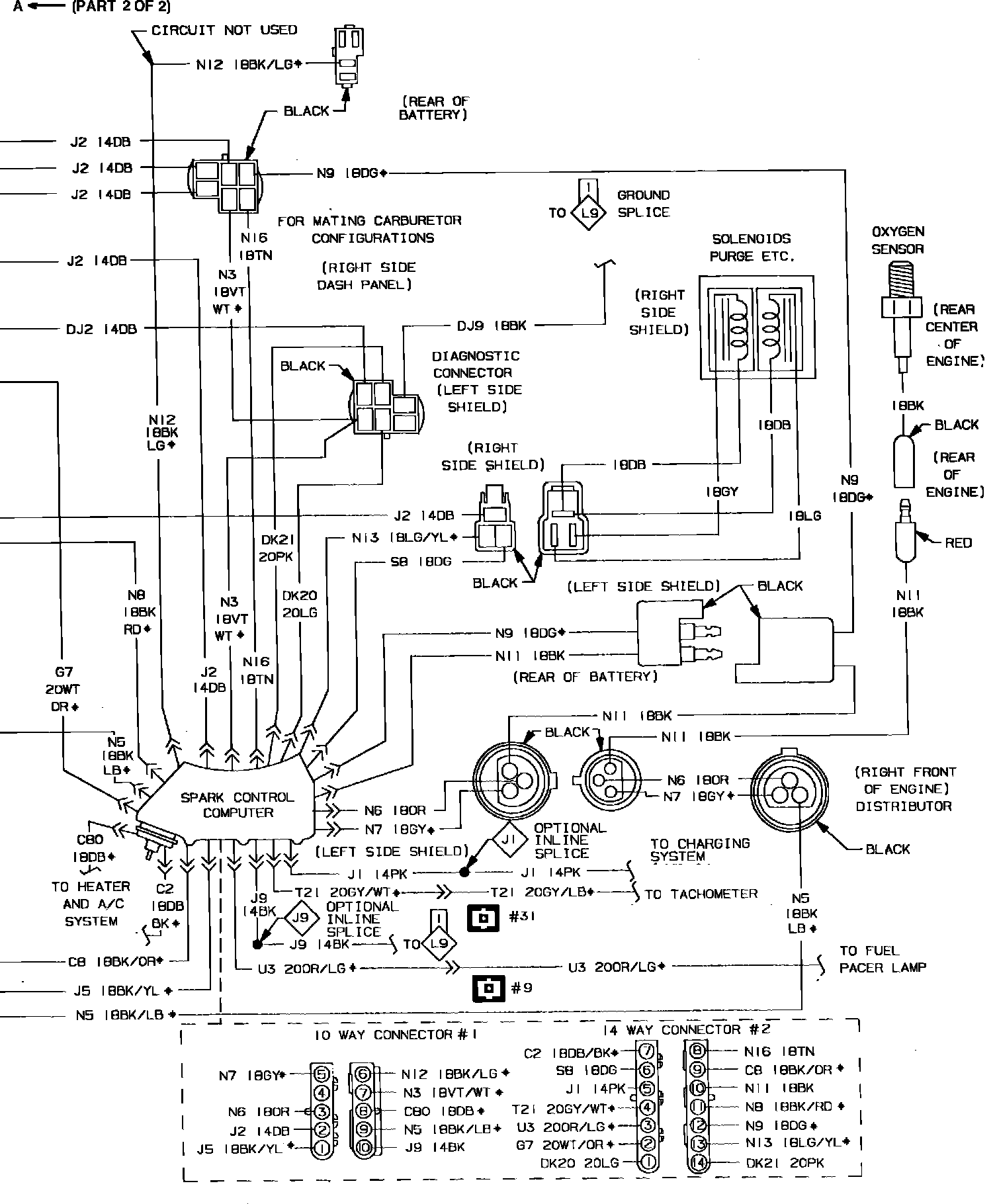 Ignition System Wiring Circuit. Less Turbocharger: