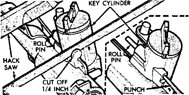 3. Using a suitable drift, drive roll pin from housing and remove lock cylinder.