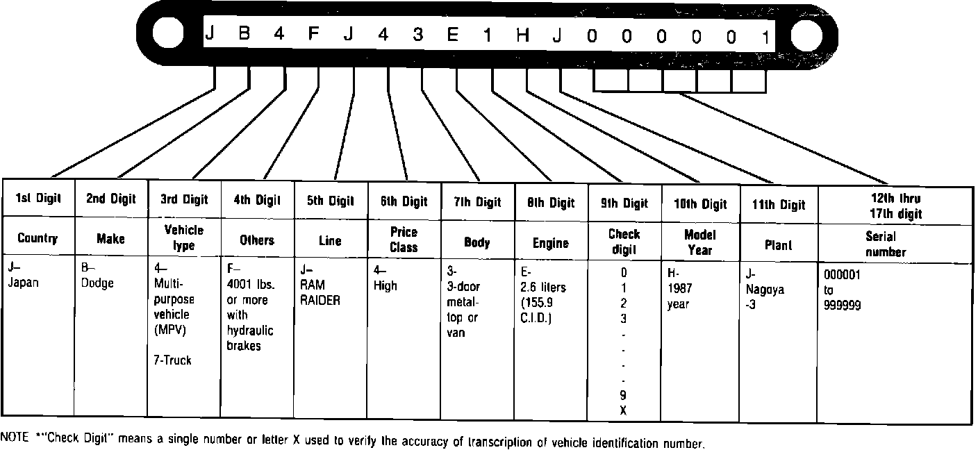 VEHICLE IDENTIFICATION CODE CHART PLATE