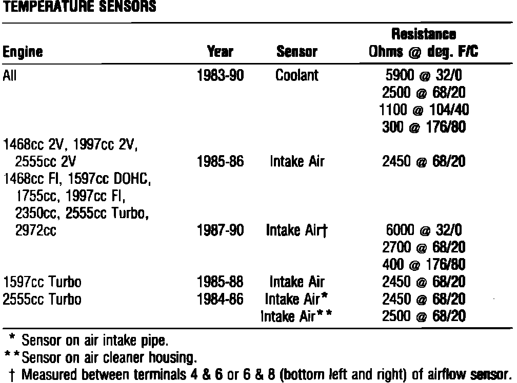 Throttle Body Temperature Sensor: Specifications