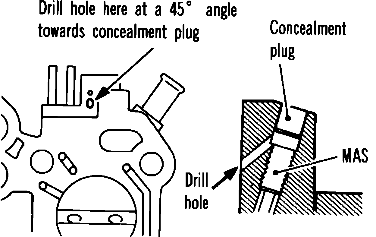 4. Drive out concealment plug using a suitable drift, Fig. 20, then blow away all metal chips using compressed air.