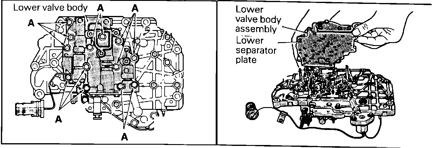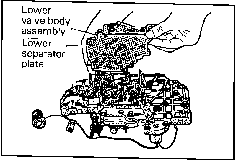 2. Remove the 13 mounting bolts securing the lower valve body, and remove the lower valve body from the valve body assembly, making sure the lower separator plate comes with the lower valve body (Figure 1).