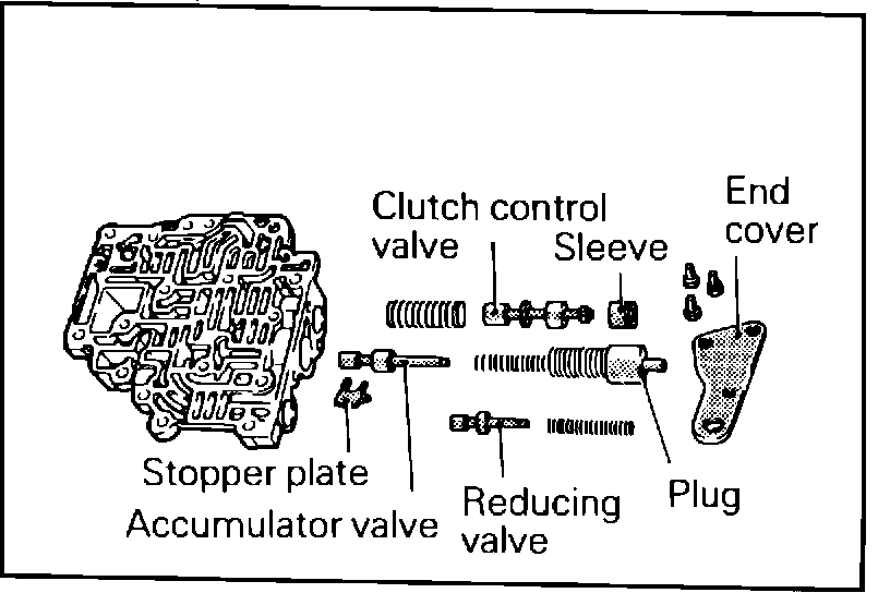 3. Remove the end cover from the lower valve body by removing the three attaching bolts.