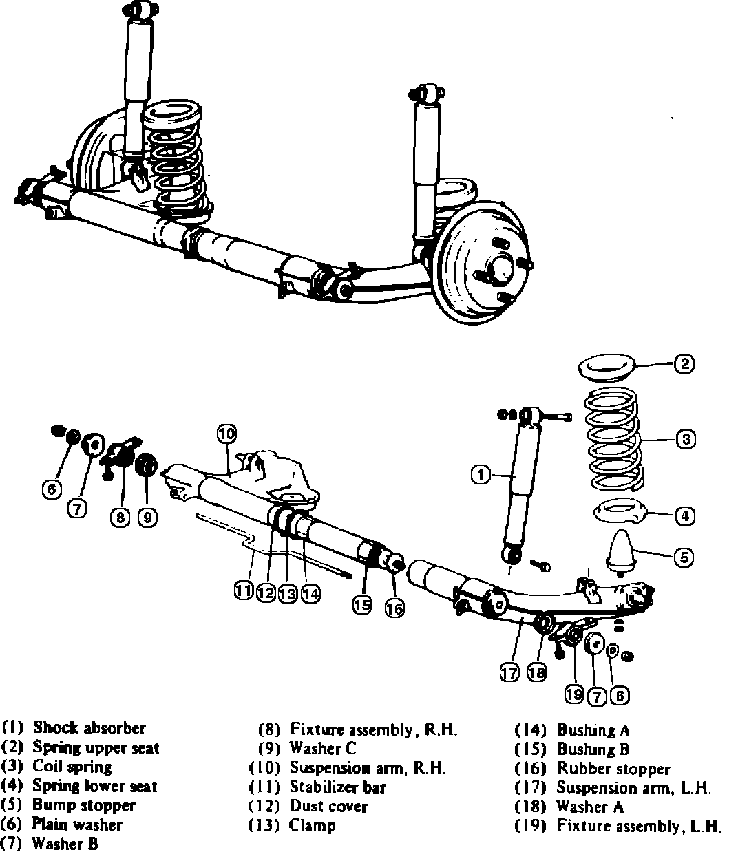 Fig. 9 Coil spring rear suspension. Colt & Colt Vista w/2 wheel drive, exc. 1988 Colt: