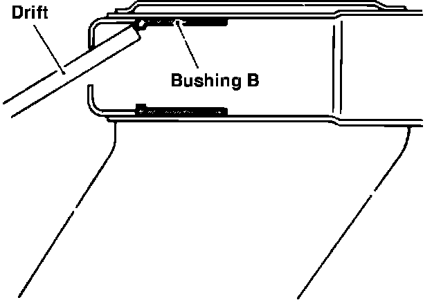6. Using a suitable drift, drive bushing B from left hand suspension arm.