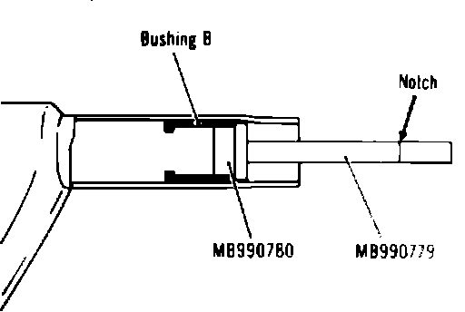 2. Apply grease to outer surfaces of bushings, then using tools Nos. MB990779 and MB990780, drive bushing B in until tool contacts end of left suspension arm. Using tool No. MB990780, drive bushing A into left suspension arm.