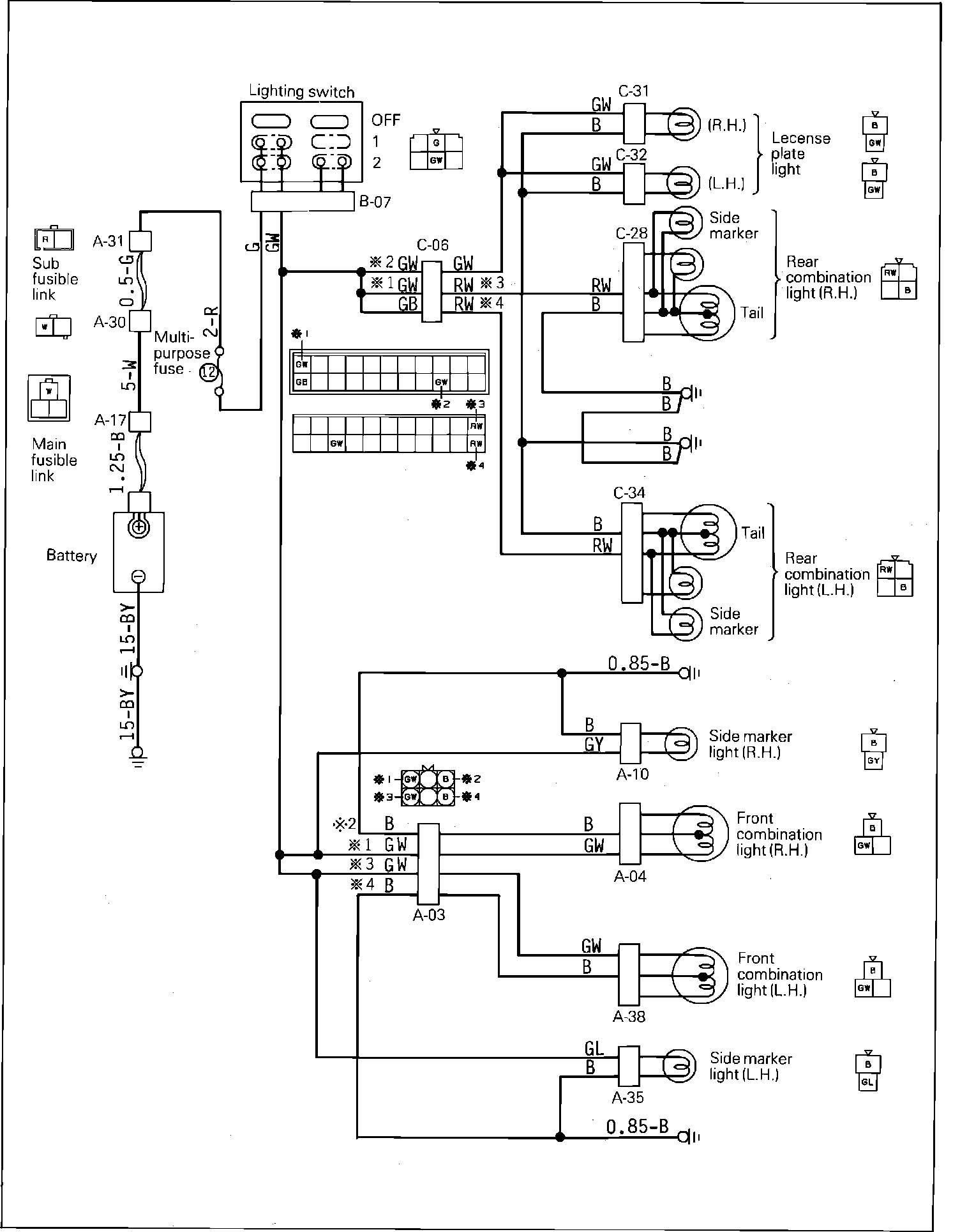 License, Position, Side Marker & Tail Lamp Wiring Circuit: