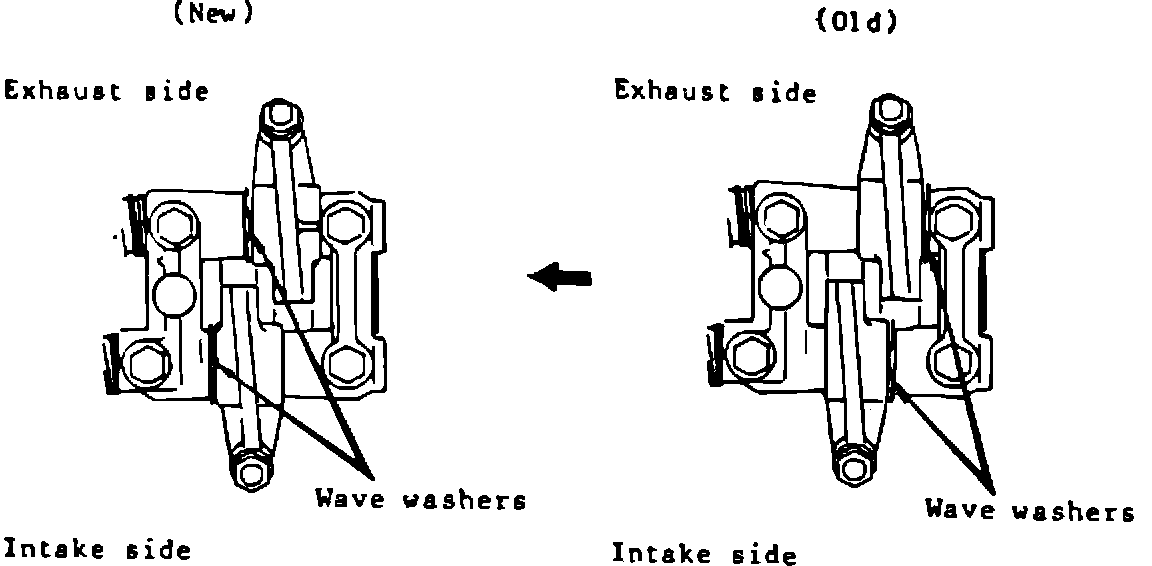 A change in the cylinder head camshaft bearing cap, and the rocker arms on subject model vehicles equipped with 1.6L engines, will also change the positioning of the wave washer during assembly of the rocker arms to the cylinder head.
