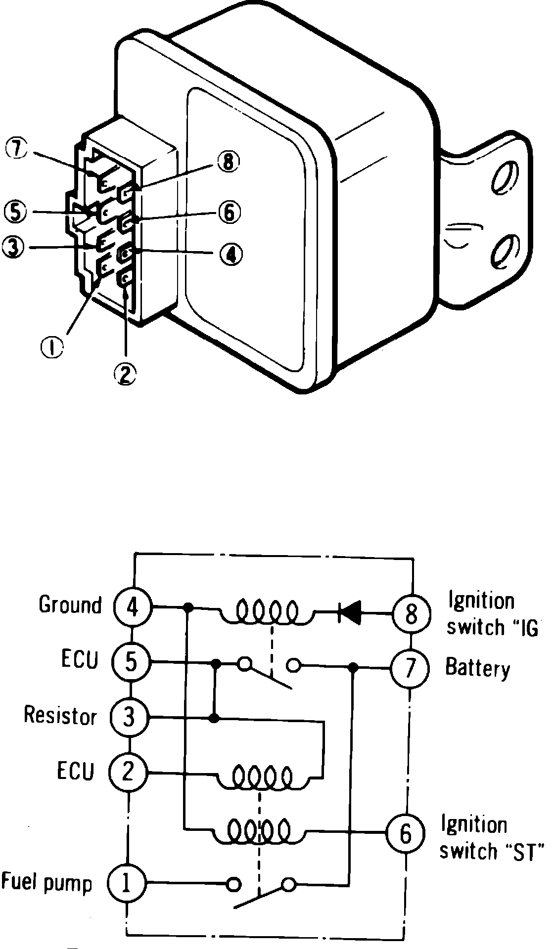Note:Failure of the control relay prevents power supply to the fuel pump, injectors and ECU. Resulting in start failure.