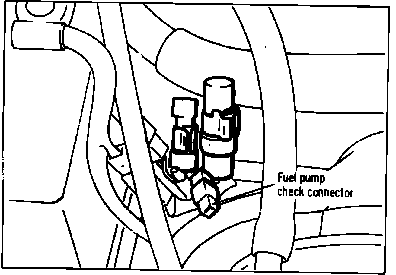 The fuel pump is located in the engine compartment and can be energized by connecting a jumper wire across the electrical connector, Fig. 25. When a jumper wire is connected across terminals 1 and 2, the operating sound of the fuel pump should be heard. When no operating sound can be heard, check connector and wiring for defects. If no defects are found, disconnect fuel pump connector at the pump, then energize. If pump fails to operate, replace.