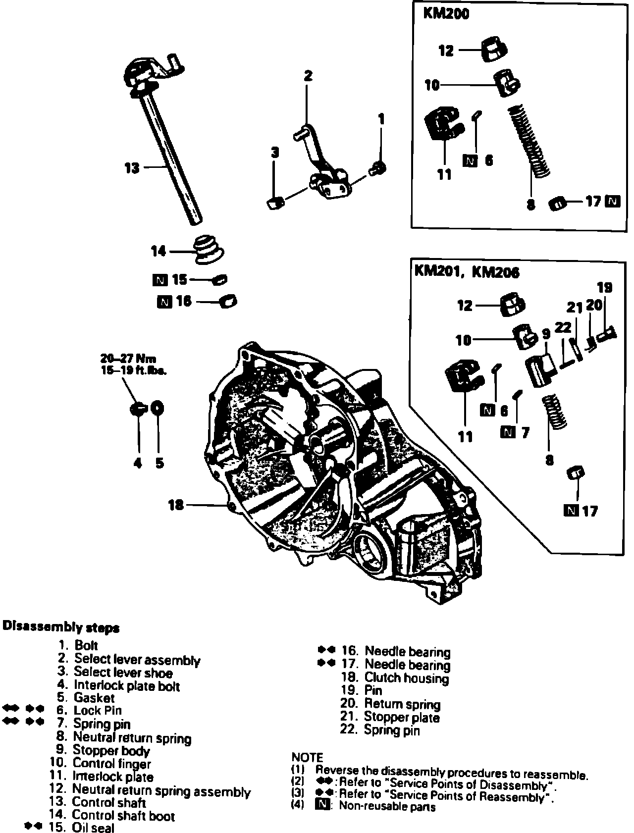 Caution When removing the lock pin, turn the control lever to such position that the lock pin will not contact the clutch housing.