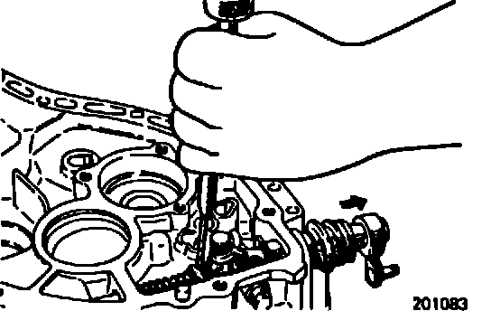 Drive out the spring pin from the stopper body using the special tool or a pin punch.