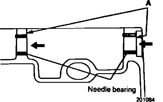 Install the needle bearing flush with the surface A of the clutch housing.