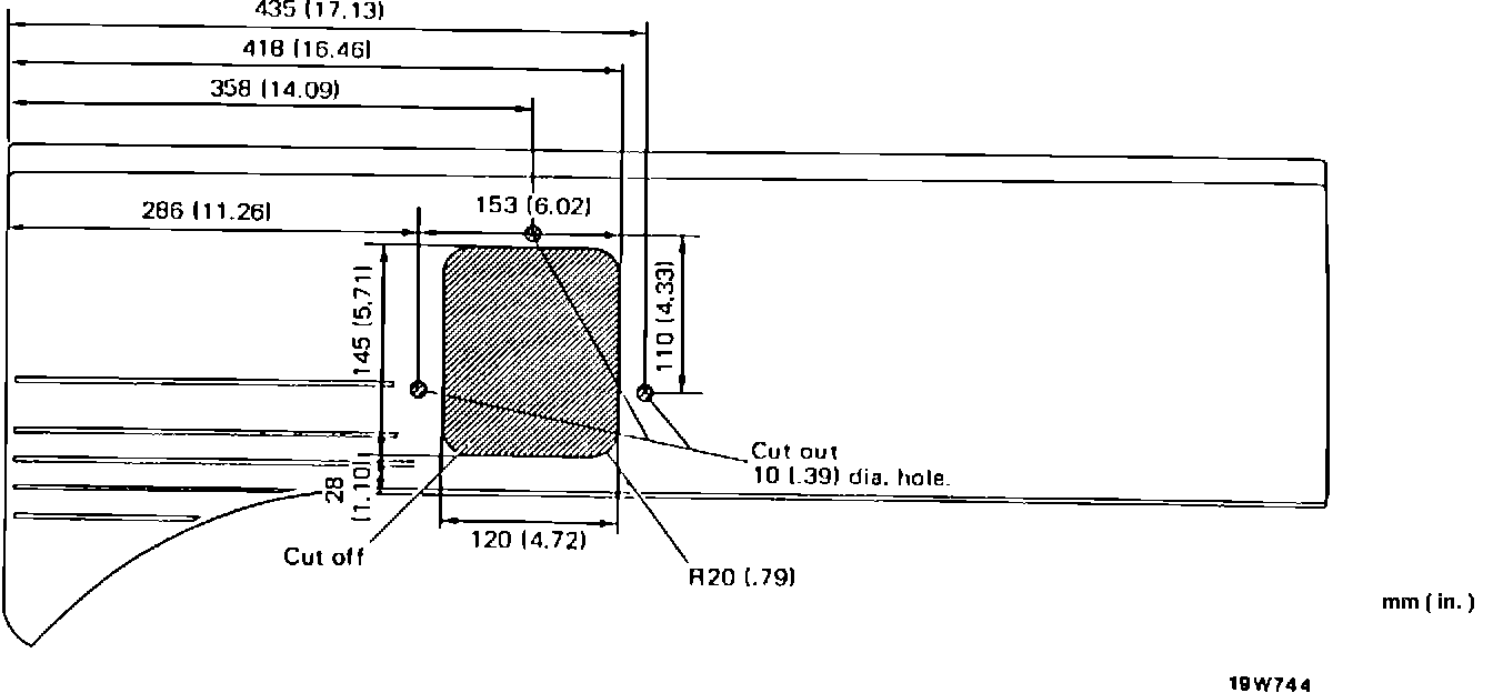 2. Remove quarter trim, rework it as shown in the following illustration and install.