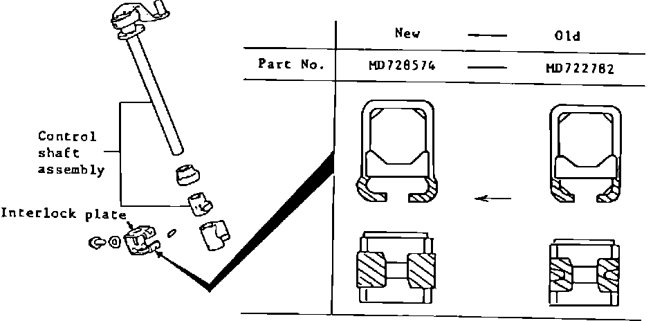 Double gear meshing on subject model vehicles when shifting. A new revised interlock plate has been used in production since February 4, 1987, effective with transaxle No. DY3920, and is interchangeable in previously built transaxles (Figure 1).