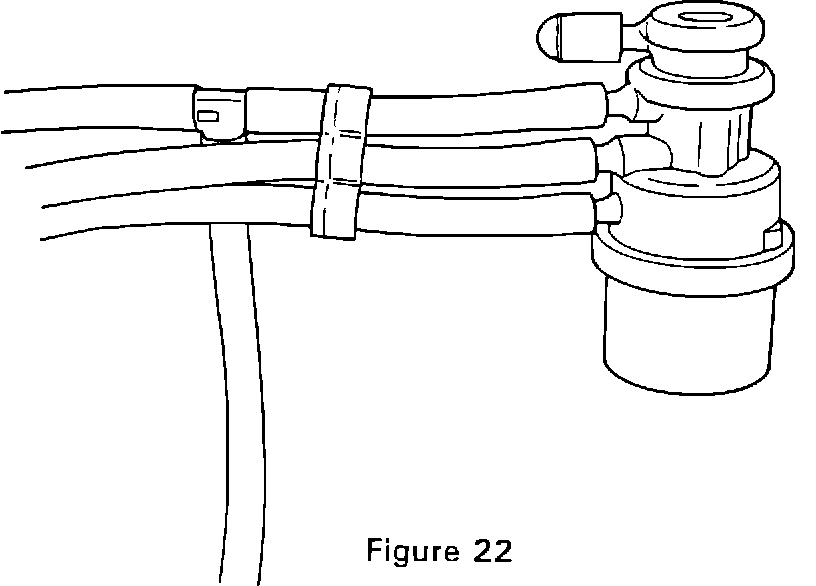 1. Assemble the Vacuum Control Valve and vacuum hose harness. Match the blue, red, and white tracer hoses to the corresponding ports on the valve (Figure 22).