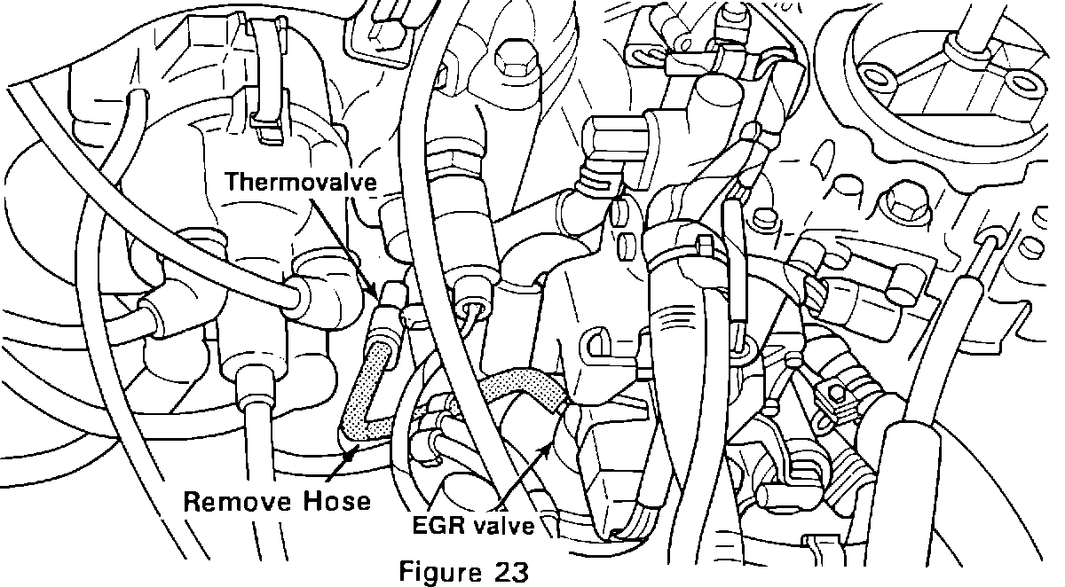 2. Remove the vacuum hose between the thermovalve and the EGR valve as shown in Figure 23.