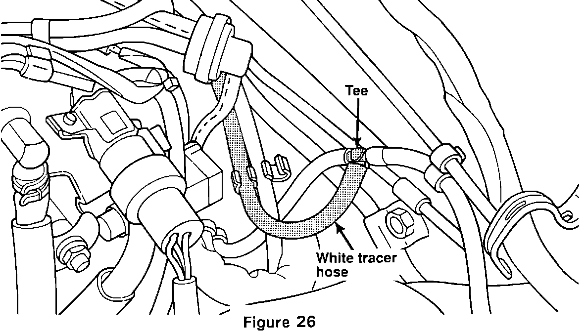 5. Insert the harness vacuum tee at the end of the white tracer hose into the cut ends of the hose (Figure 26).