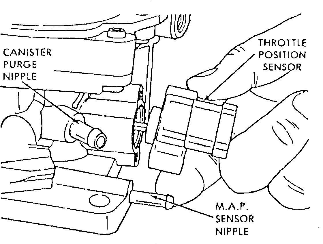 2. Disconnect three-way connector at throttle position sensor (TPS), then remove TPS to throttle body mounting screws.