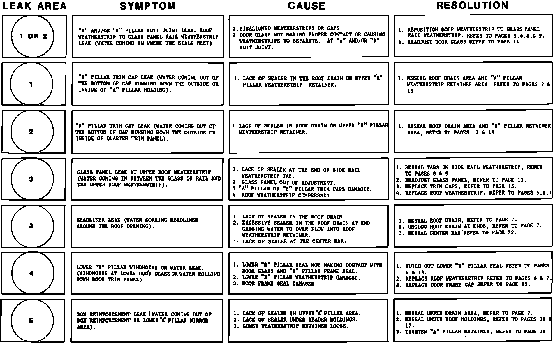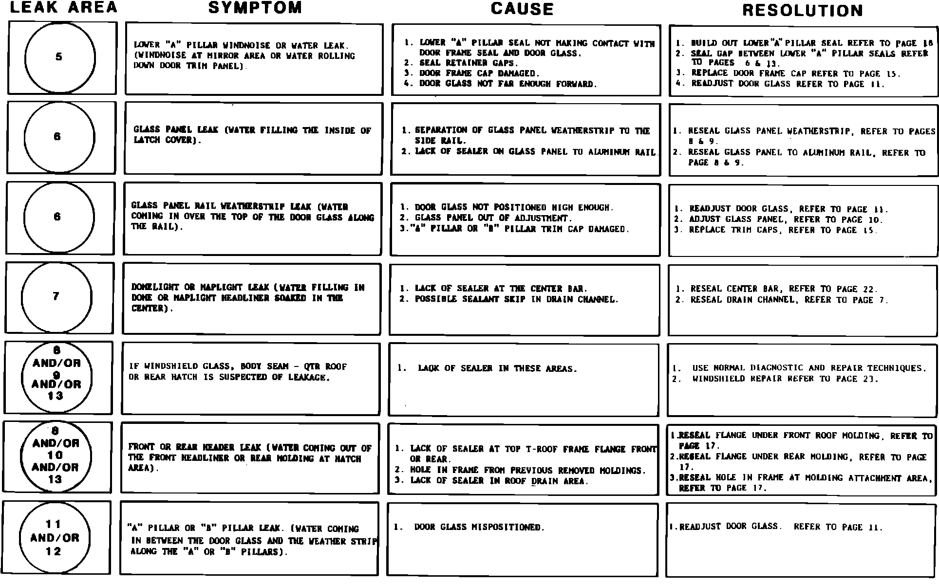 * REFER TO DIAGNOSTIC CHART AS AN AID TO DETERMINE WATERLEAK ENTRY AND REPAIR.