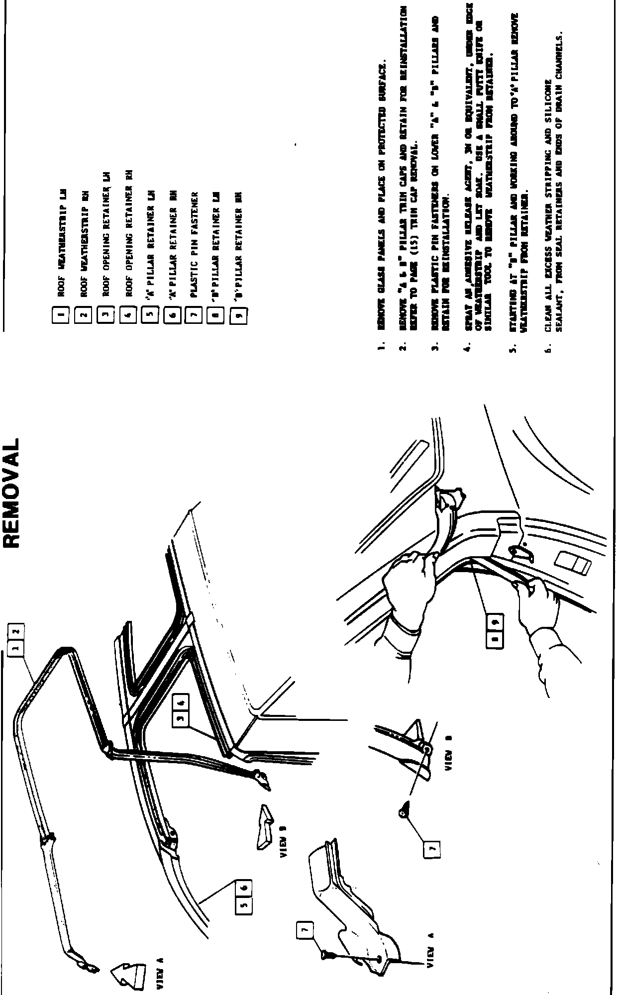 7-11-12-13 5. ROOF WEATHERSTRIP - REMOVAL