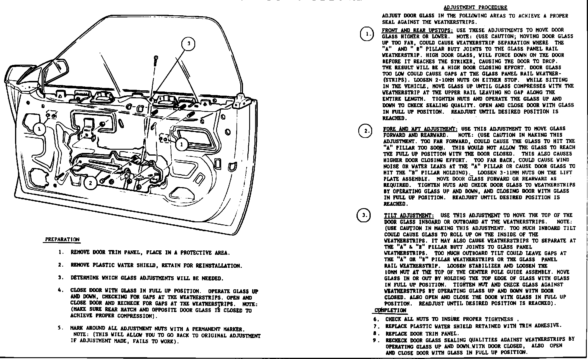 DOOR GLASS ADJUSTMENT: