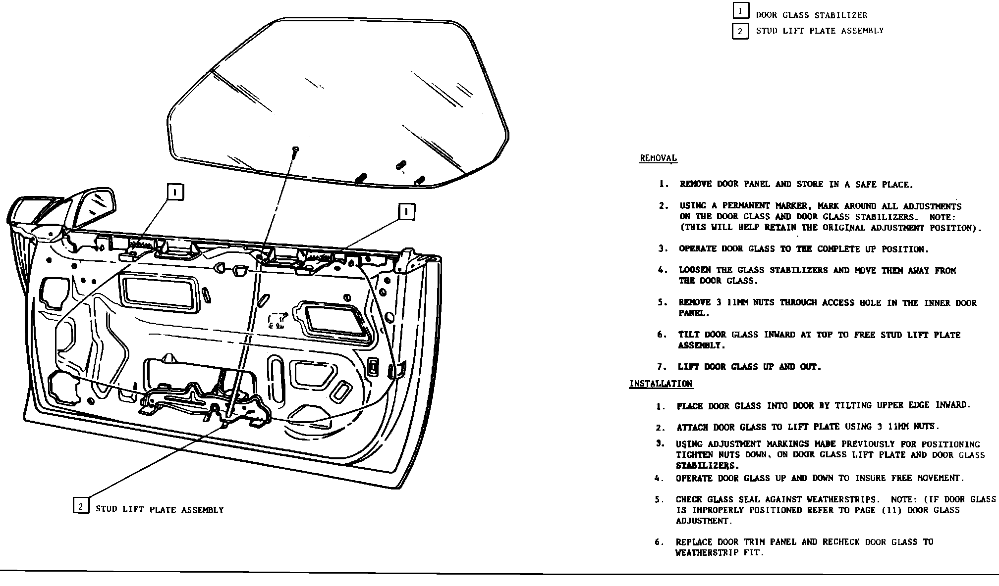 12. DOOR GLASS - REMOVAL & INSTALLATION