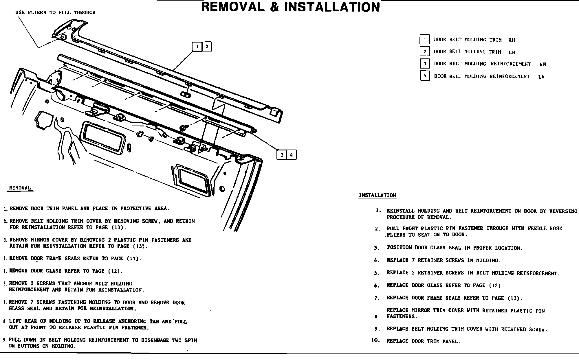 14. DOOR BELT MOLDNG - REMOVAL & INSTALLATION