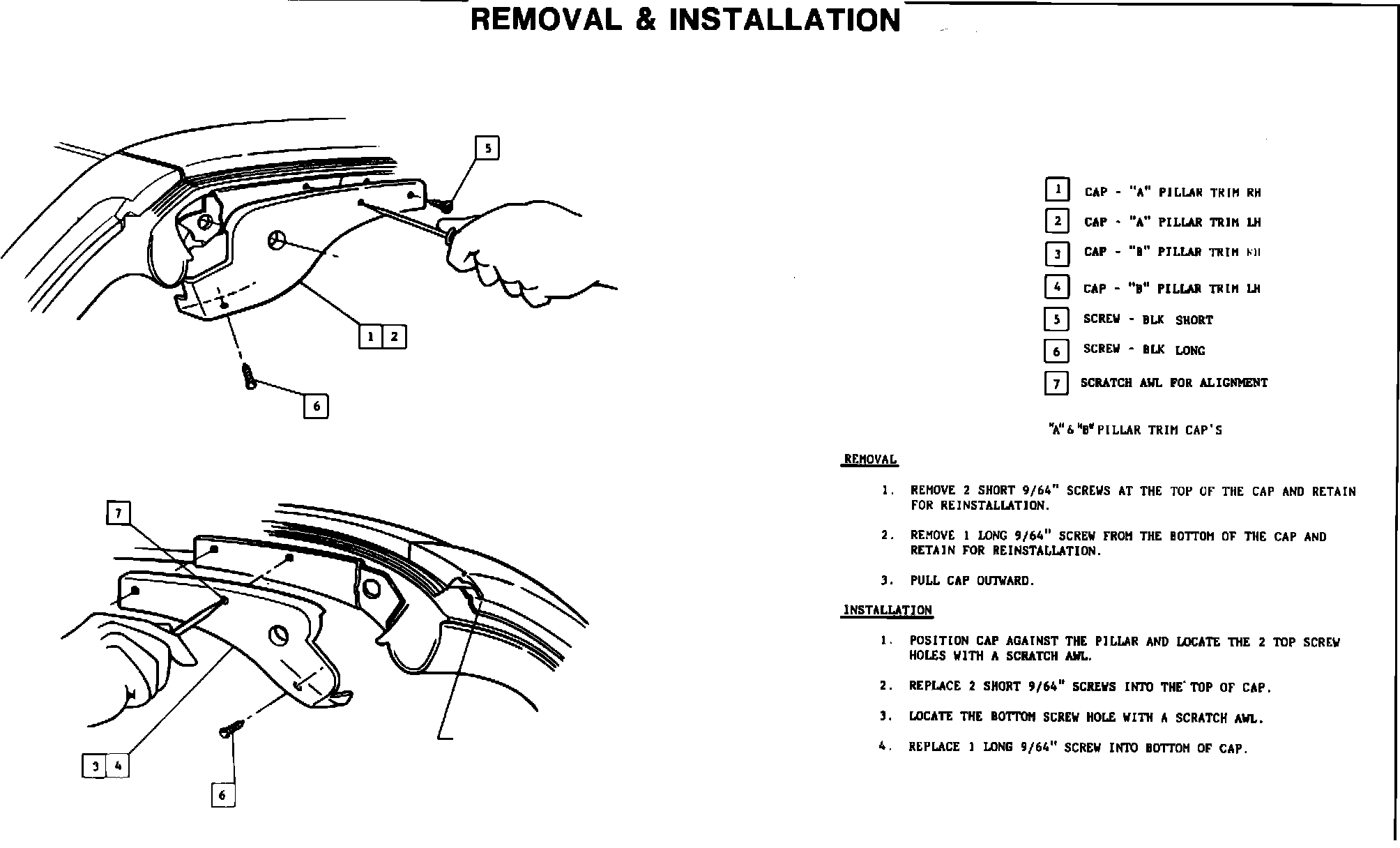 UPPER A & B PILLAR TRIM CAP'SREMOVAL & INSTALLATION: