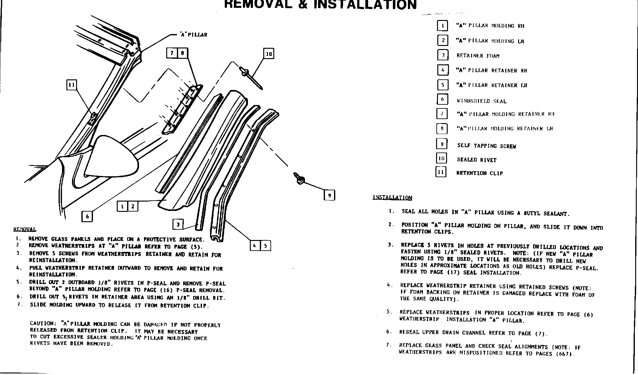 "A" PILLAR MOLDINGREMOVAL & INSTALLATION: