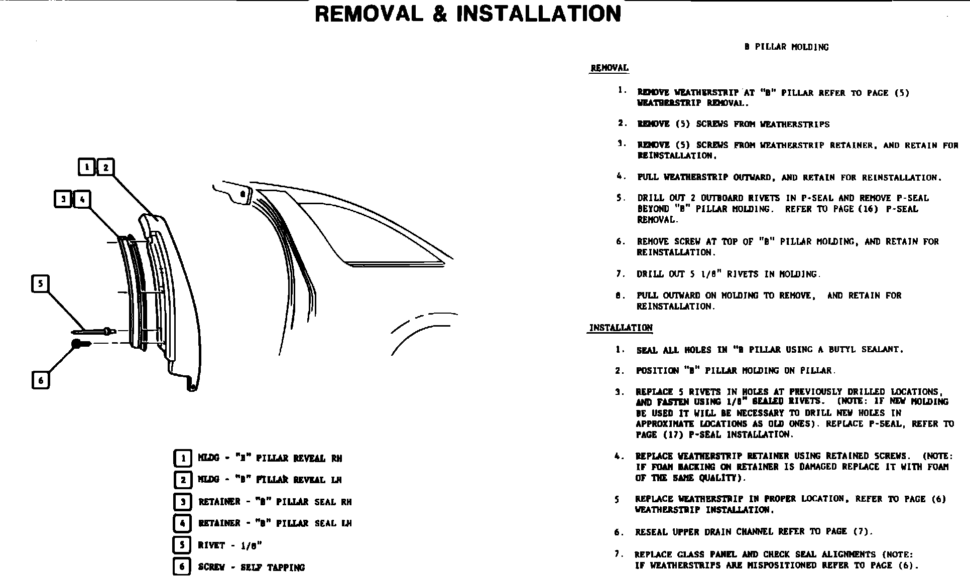 "B" PILLAR MOLDINGREMOVAL & INSTALLATION: