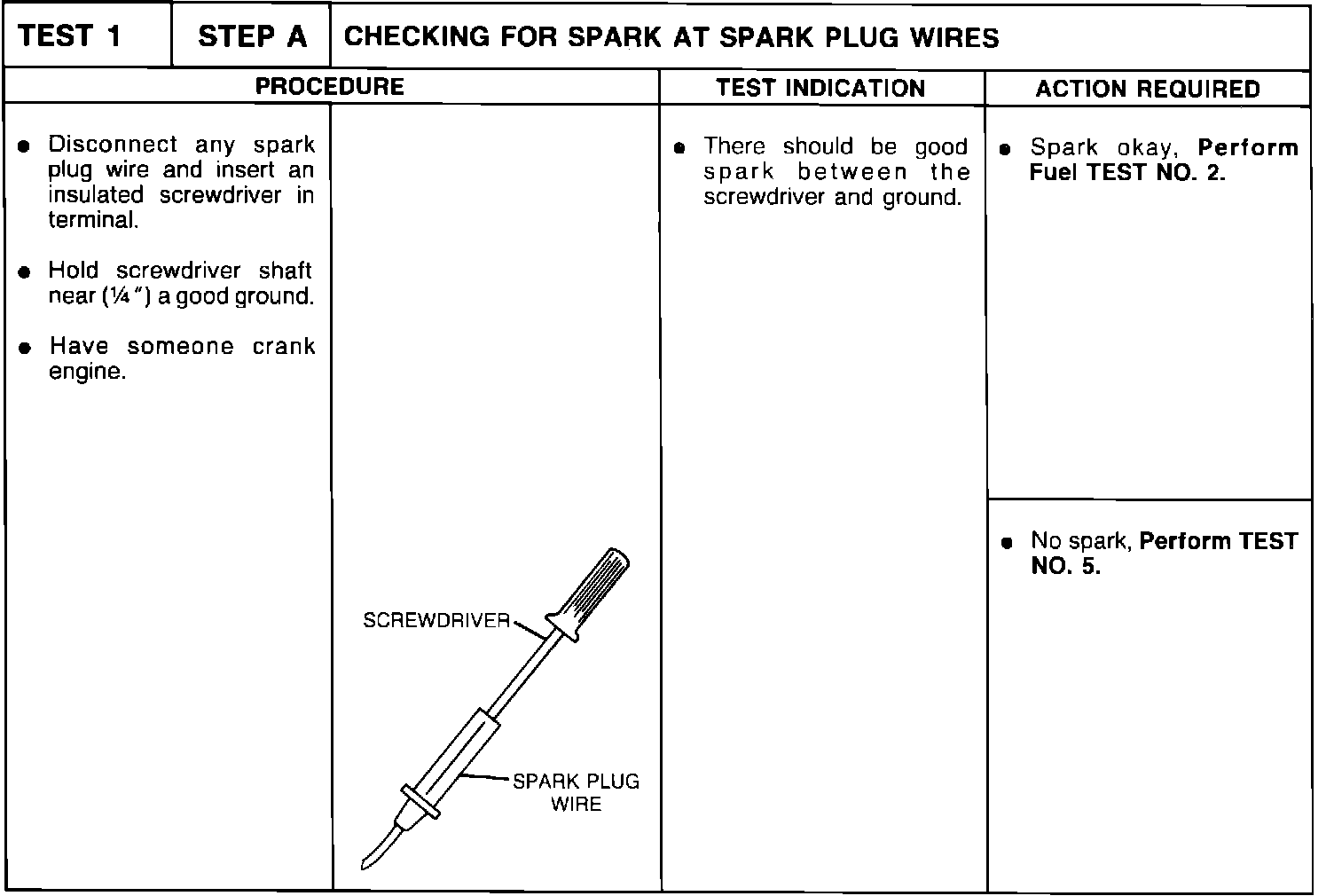 Test 1-Step A, Checking Spark At Spark Plug Wires:
