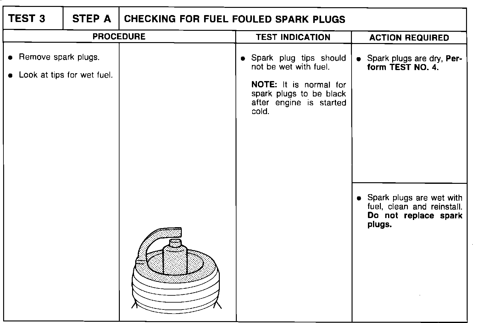 Test 3-Step A, Fuel Fouled Spark Plugs: