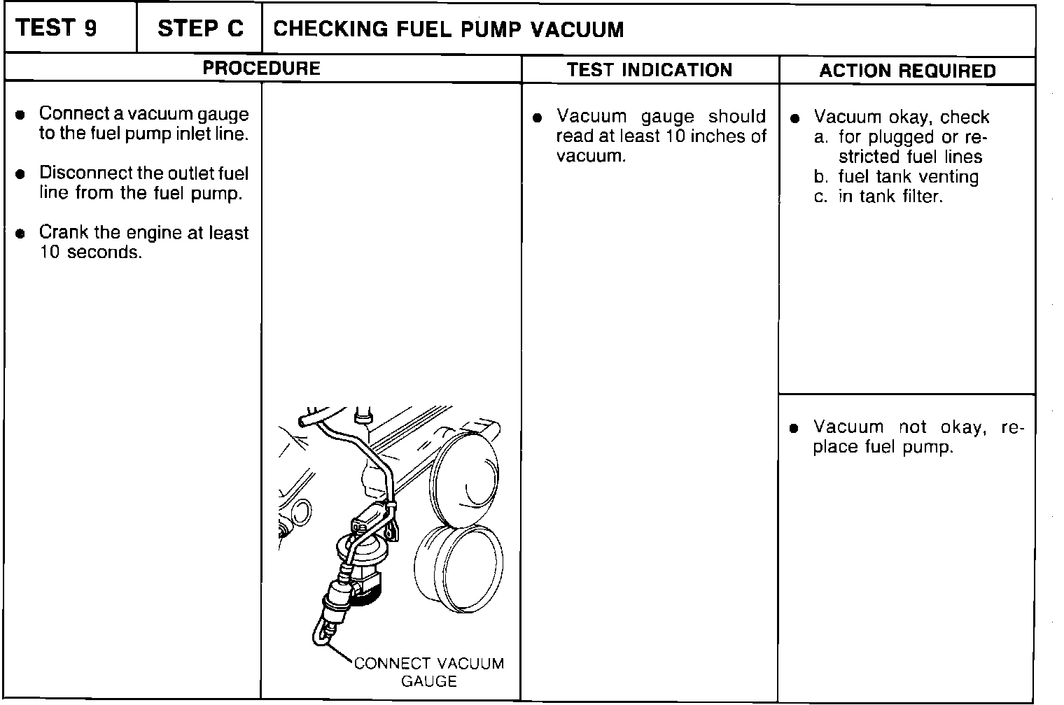 Test 9-Step C, Fuel Pump Vacuum: