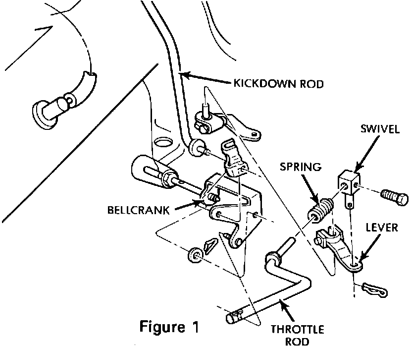 3. Remove the throttle rod from the swivel and disconnect it from the bellcrank. Discard the rod and save the spring for reinstallation.