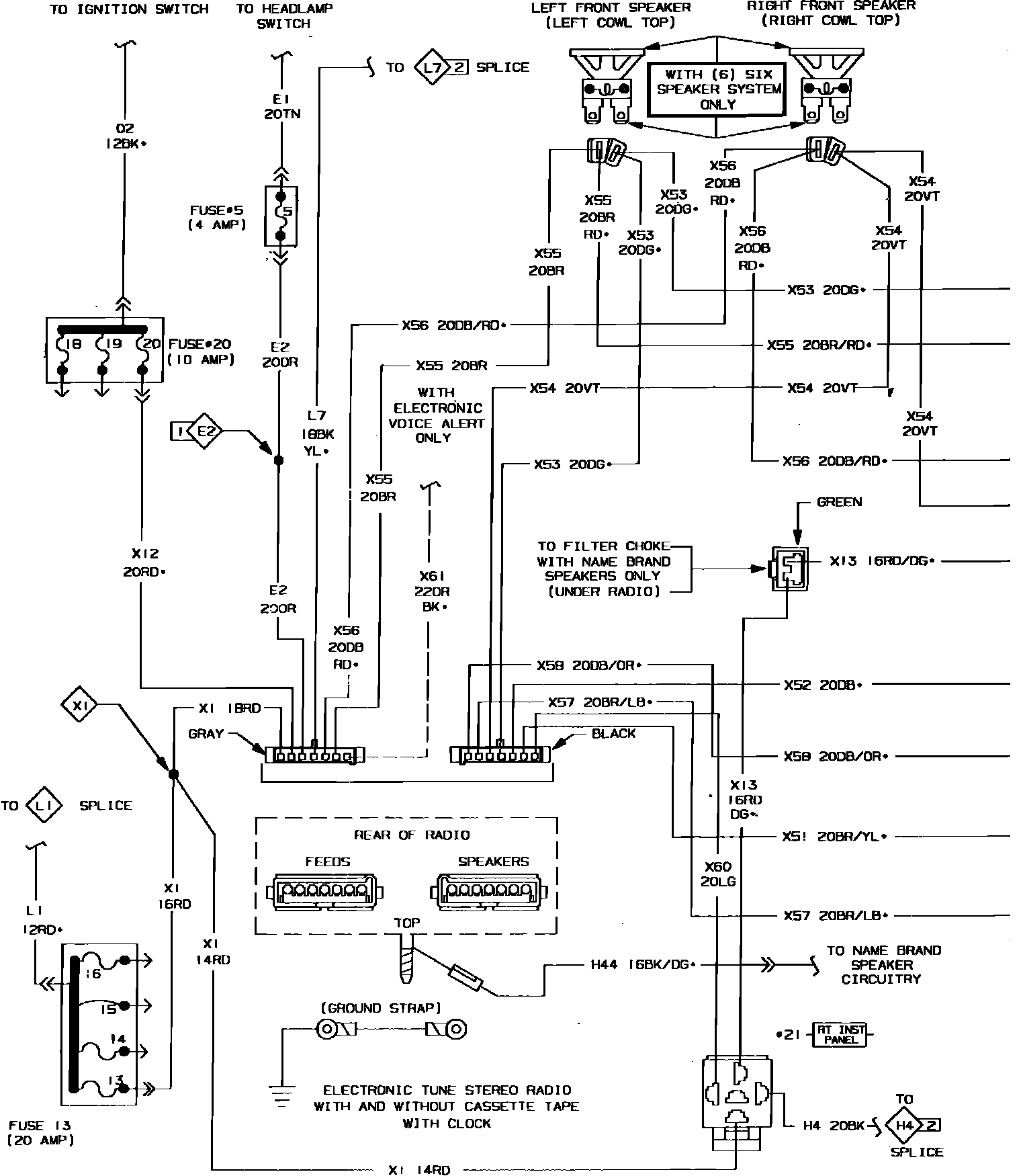 Fig. 51 Radio Wiring Circuit (Part 1 of 2). Less Voice Alert: