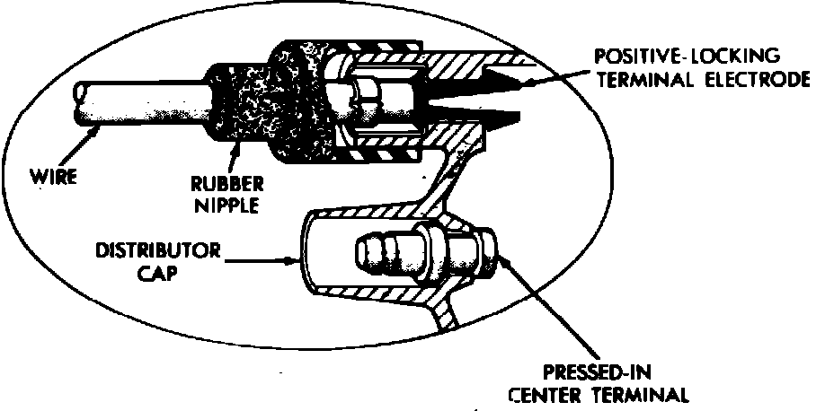 3. Refer to Fig. 9 for proper installation of spark plug wires. Ensure positive locking terminal electrode is fully seated in cap.
