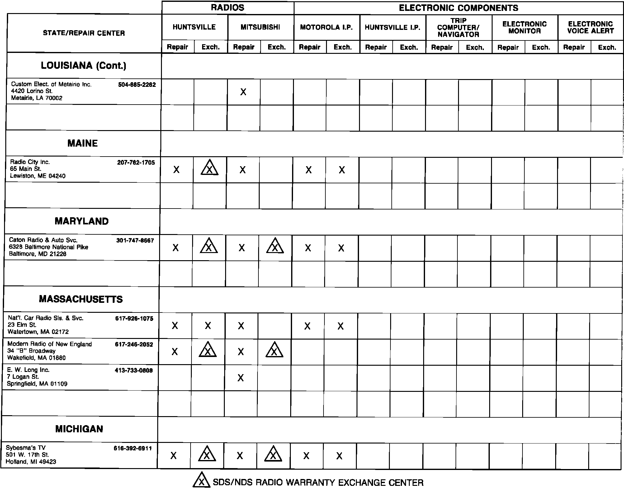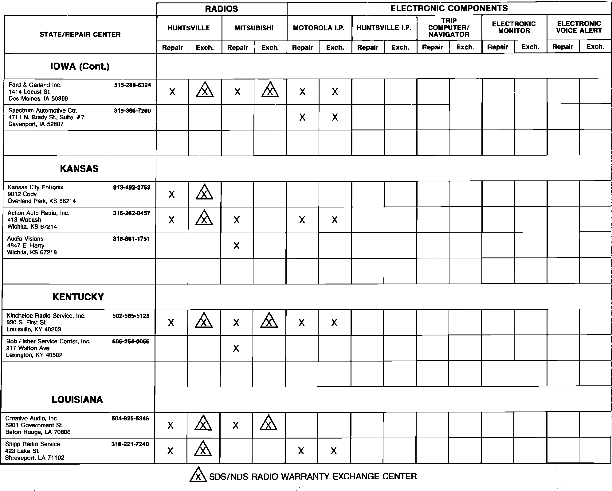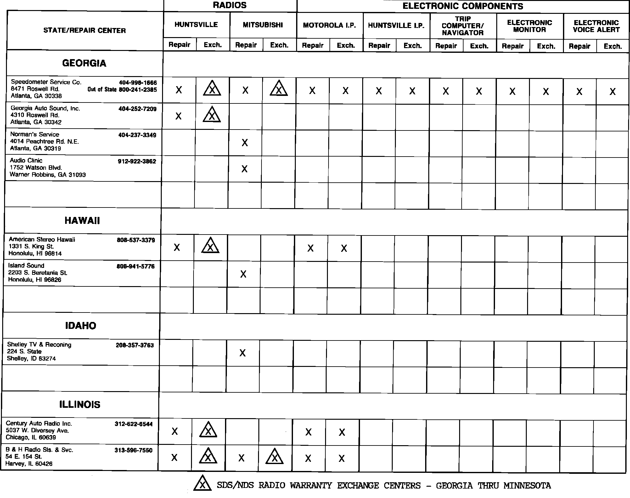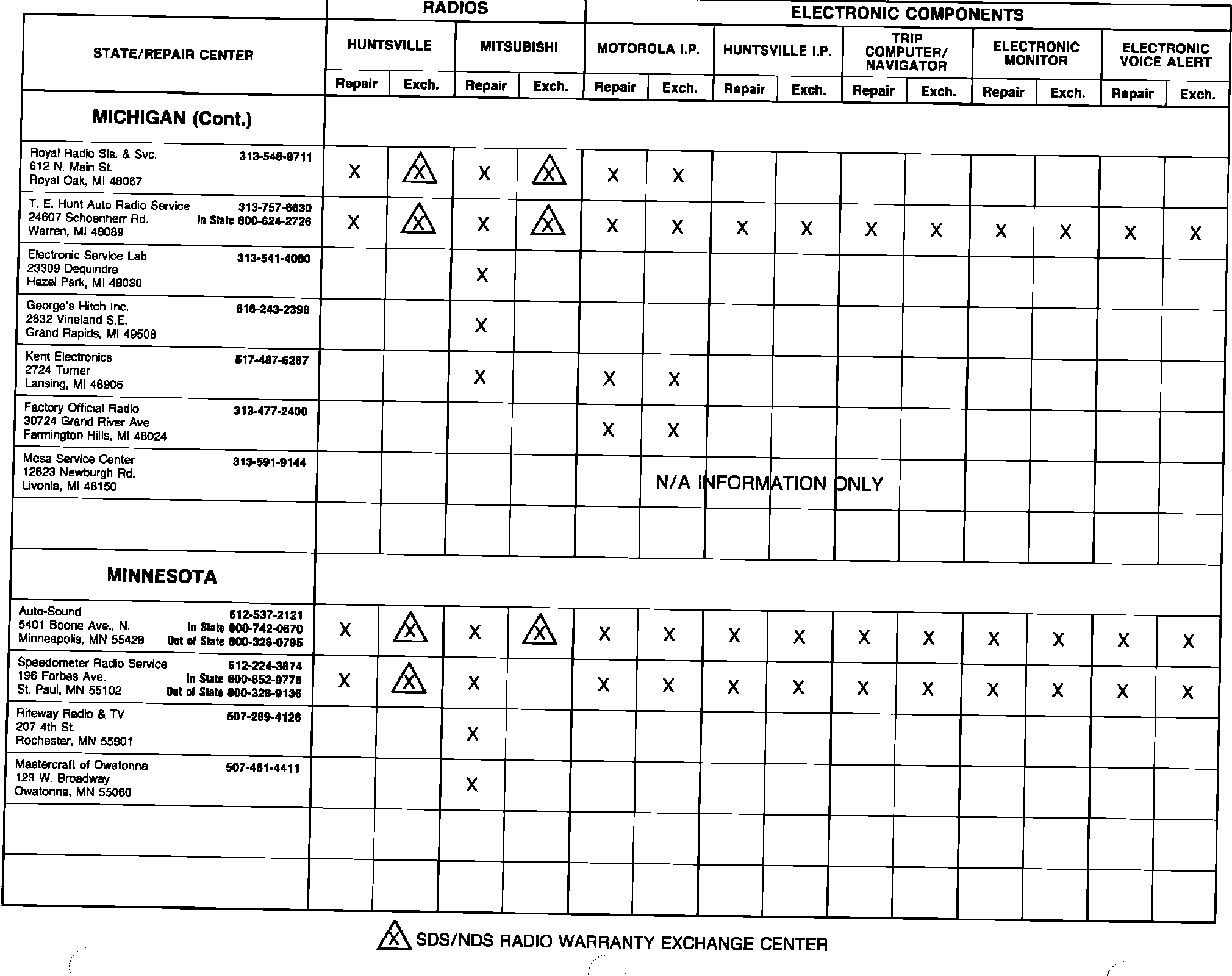 Sds/NDS Radio Warranty Exchange Centers - Georgia Thru Minnesota