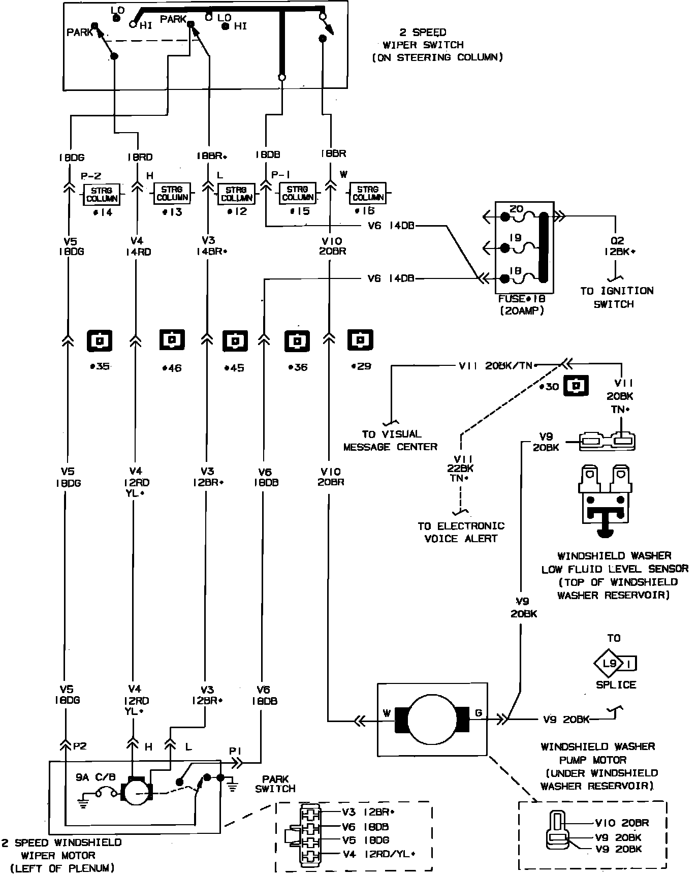 Fig. 57 Windshield Wiper System Wiring Circuit. Less Intermittent: