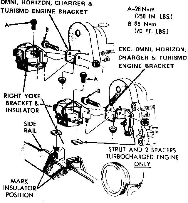 Fig. 5 Engine mount. 1984 - 85 right side shown, 1986 - 88 similar