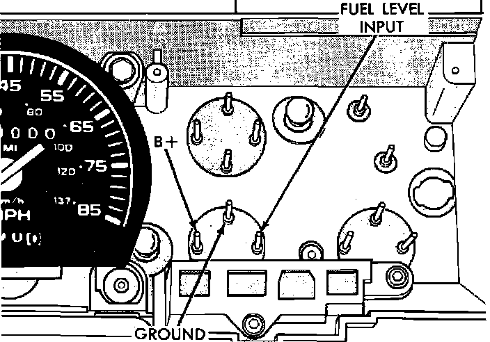 2. Check for continuity in wire between fuel tank sending unit and gauge (fuel level input pin).