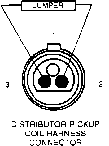 5. Connect a jumper wire between pick-up coil electrical connector terminal No. 2 and 3. Make and break this connection several times while observing ignition coil secondary wire.